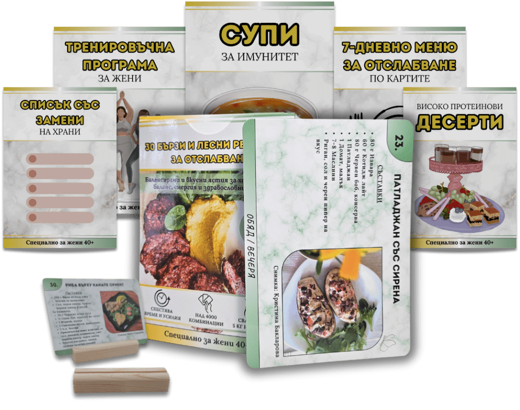 Търсиш лесен и ефективен начин да отслабнеш, без да се лишаваш от вкусна храна? Представяме ти „30 КАРТИ С РЕЦЕПТИ ЗА ОТСЛАБВАНЕ“ – най-доброто решение